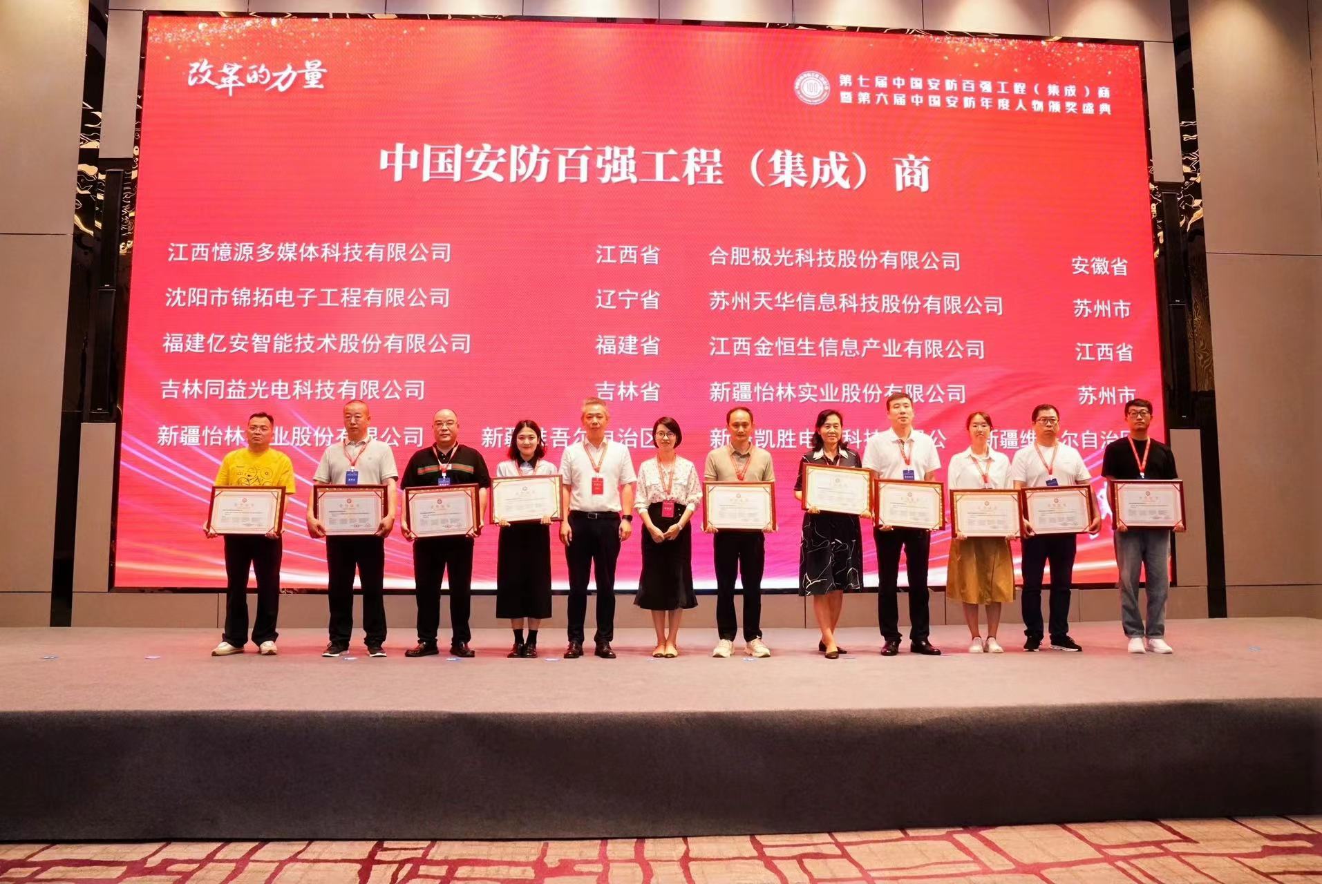 其中科瑞智能技术有限公司、江西普联信息技术有限公司、江西金恒生信息产业有限公司、南昌金科交通科技股份有限公司、江西憶源多媒体科技有限公司荣获中国安防百强工程商。